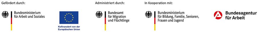 Das Förderpogramm IQ - Integration durch Qualifizierung zielt auf die nachhaltige Verbesserung der Arbeitsmarktintegration von Erwachsenen ausländischer Herkunft ab. Das Projekt "Skill UP - Wirtschaftliche Kompetenzen für den Arbeitsmarkt" wird im Rahmen des Förderprogramms IQ - Integration durch Qualifizierung durch das Bundesministerium für Arbeit und Soziales und die Europäische Union über den Europäischen Sozialfonds Plus (ESF Plus) gefördert und vom Bundesamt für Migration und Flüchtlinge administriert. Partner in der Umsetzung sind das Bundesministerium für Bildung, Familie, Senioren, Frauen und Jugend und die Bundesagentur für Arbeit.
